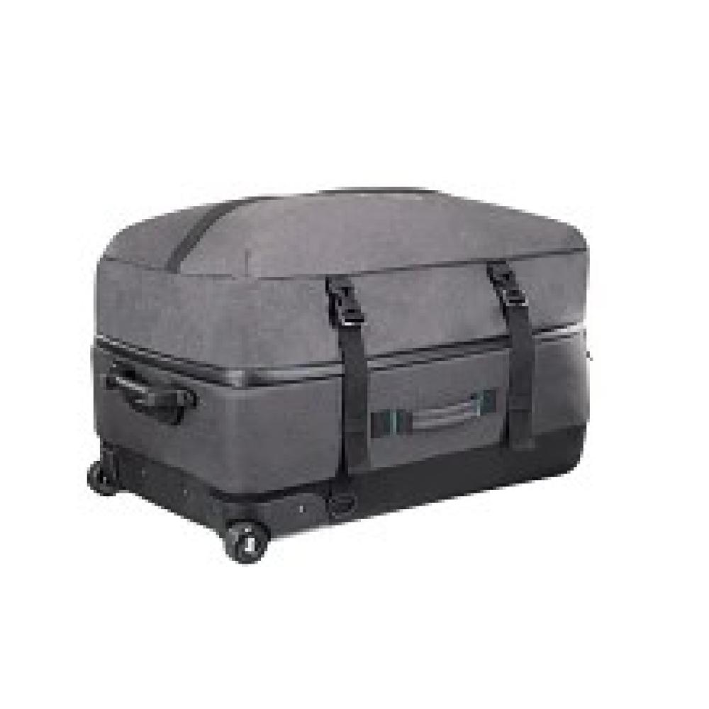 The new Definition Roll 130 is a premium roller bag loaded with travel-friendly features, including a solid back to increase rolling stability and a telescopic tow handle for easy maneuvering through airport terminals. Huge volume main compartment includes a zippered mesh pocket on the inside cover. Additional external front compartment with zipper allows for extra storage. Made with new recycled two-tone gray fabric with blue stitched bar tack reinforcements, this quality bag is ready for world travel.