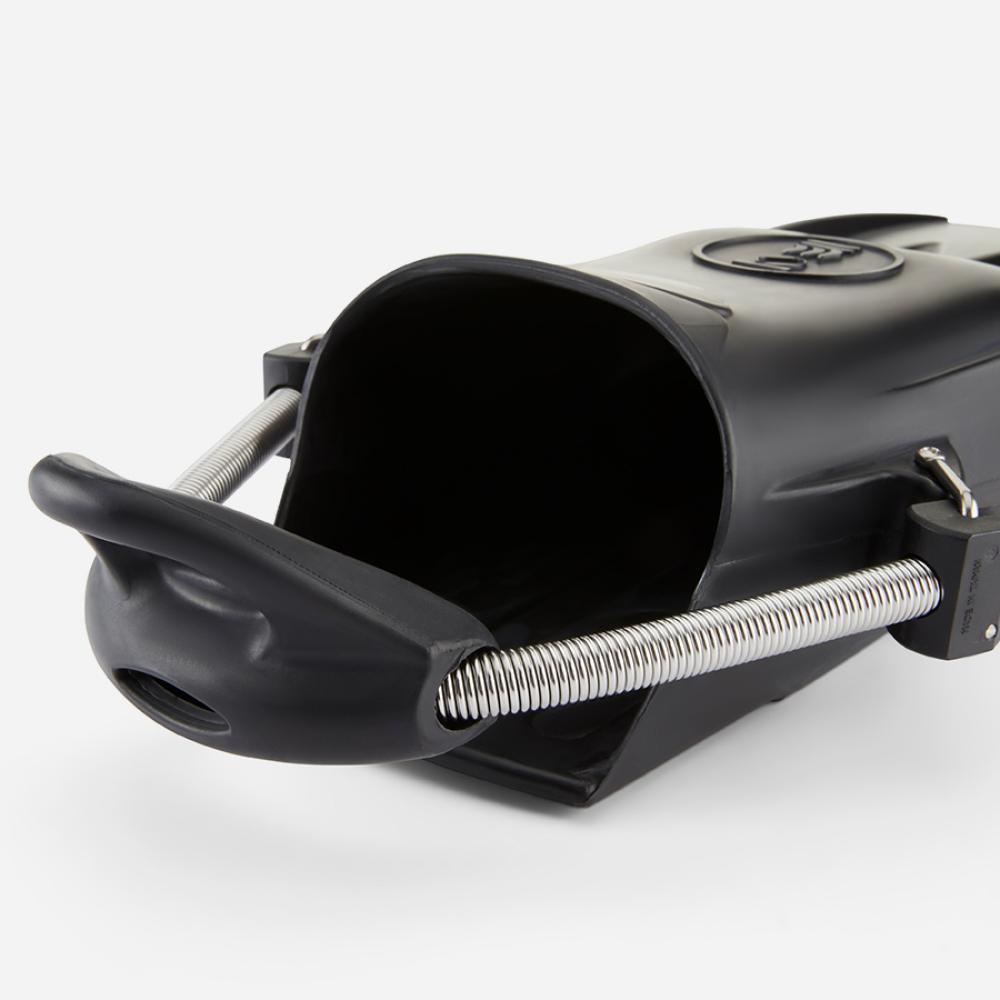 The Tech Fins were developed with technical divers in mind with a slightly negative buoyancy characteristic but is suitable for all levels of diver looking for a high-performance rubber fin. The wider blade gives manoeuvrability without compromising the power which is there when needed, while the shorter length improves agility and makes stowing the fins for transport more convenient. Spring straps with comfortable heel pads keep the feet securely held in place and these spring straps can be removed and changed easily with everyday tools if required.